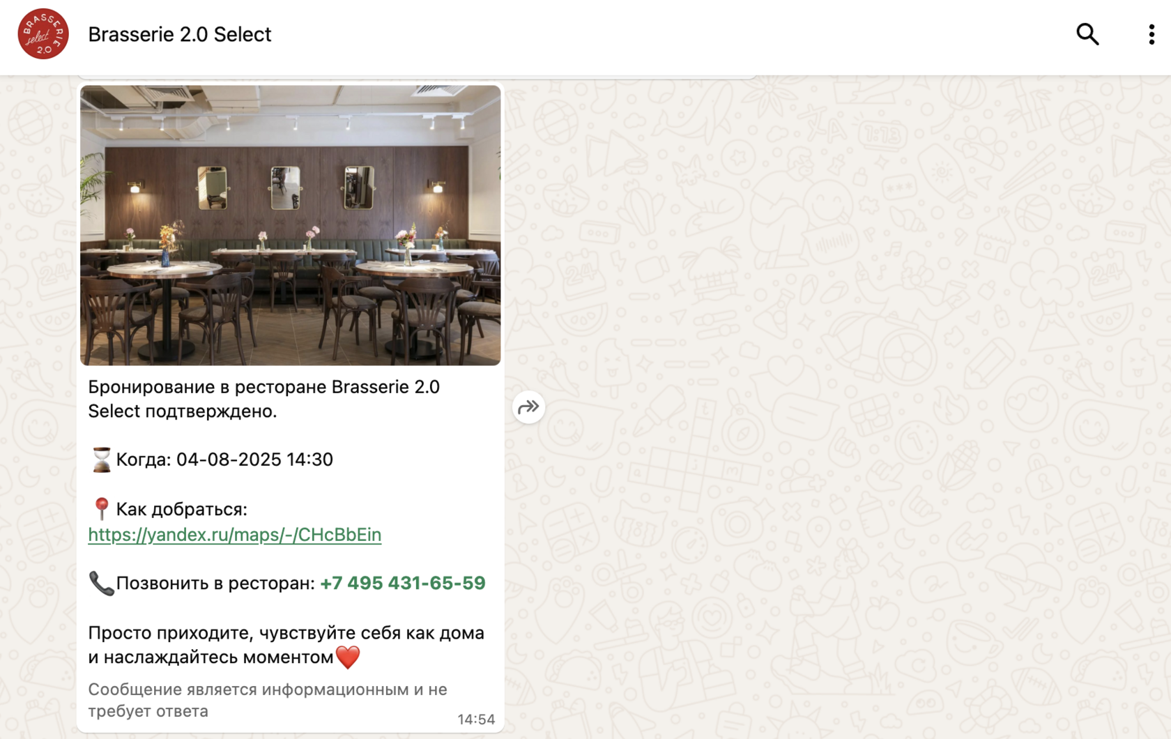 — Доработали шаблоны WhatsApp Business API: теперь можно отправлять гостям сообщения с картинкой и подписью.